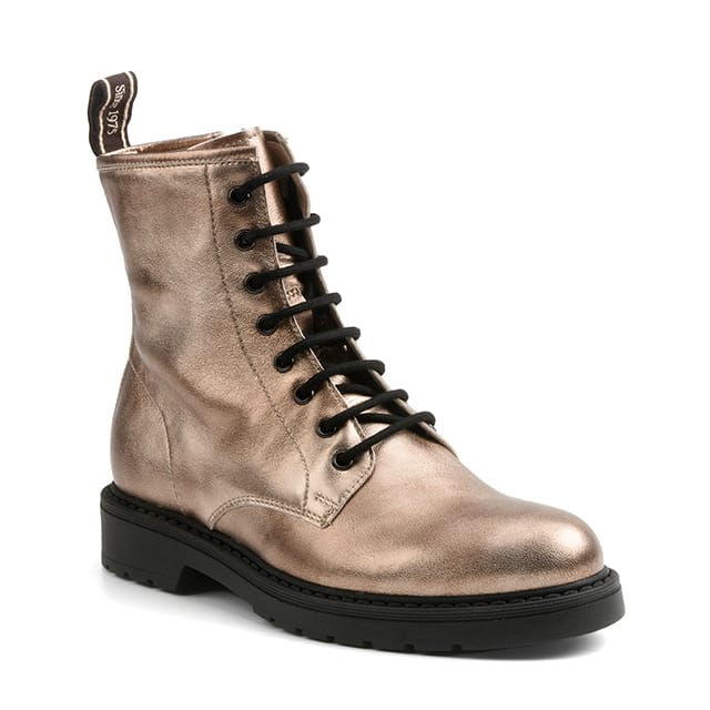 metallic leather lace-up ankle boots with zip fastening