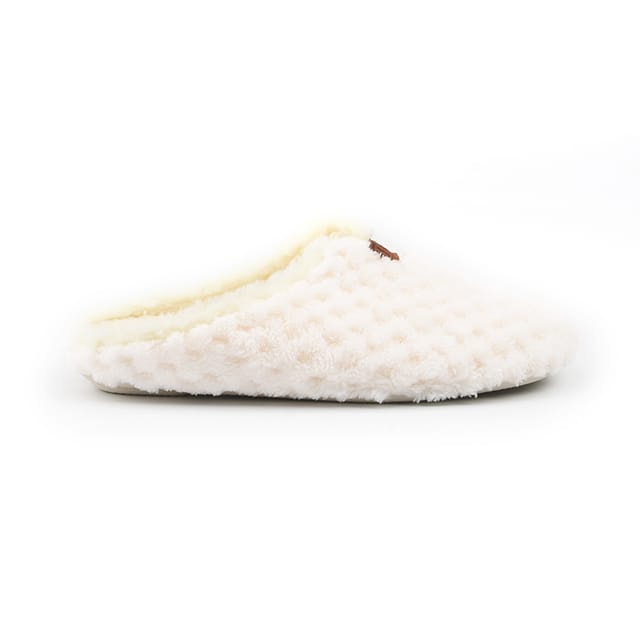 Discover the Slippers Crudo from Nortena's, ideal for a comfortable relaxation at home or in winter. These functional and comfortable slippers are designed to bring warmth and softness to your feet. Their textile top and upper offer a feeling of flexibility and freedom of movement. The synthetic plush lining ensures exceptional softness, while the synthetic plush insole ensures optimal thermal insulation. The rubber sole offers unparalleled lightness and flexibility. The Slippers Crudo are available in a single color, ecru, which is perfect for a neutral interior decoration. These slippers are designed for everyday use, whether it's home or relaxation. -