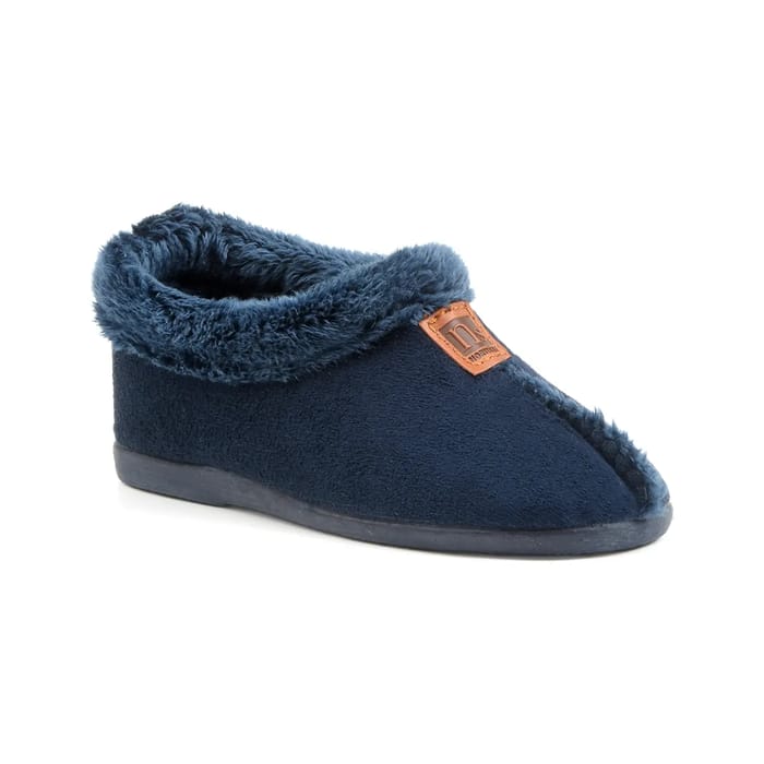 Discover the Slippers Graz from the Nortena's brand, designed to bring unparalleled comfort and warmth to your feet. These functional and comfortable slippers are ideal for winter or for indoor relaxation. Their textile top offers exceptional softness and flexibility, while the warm textile lining ensures consistent warmth. The warm textile insole completes this heat device, allowing you to feel safe and comfortable in your home or during your moments of relaxation. The rubber outsole offers a solid foundation, ensuring stability and durability. The navy blue color will add an elegant touch to your casual wear. The details of these textile slippers are carefully designed to offer you optimal comfort. The small brown leather pouch with embossed logo added to the front adds a touch of sophistication. -