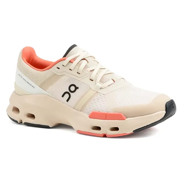 Discover the running shoes CLOUDPULSE brand On, specializing in running. These sports shoes are designed for optimal performance while offering exceptional comfort. Their 98.3% recycled polyester top guarantees optimal lightness and flexibility. The textile lining ensures efficient ventilation while keeping feet dry and comfortable. The textile insole provides support and stability necessary for sports activities. CLOUDPULSE are ideal for running, training and marathons. Their rubber sole provides optimal cushioning for repetitive impacts, while allowing for explosive thrust and rapid acceleration. The details of the shoe, such as fitness and training shoes, demonstrate their versatility and adaptability to various sports activities. The CLOUDPULSE are available in beige, a neutral and elegant color that perfectly suits the sporty uniform. The black logo of the brand We add a touch of sophistication to these sports shoes. Coral accents add a touch of color and contrast, while highlighting the CloudTec technology that characterizes these shoes. CLOUDPULSE are an excellent option for athletes looking for optimal performance while in comfort. They offer a perfect combination of technique, performance, comfort and cushioning, making them ideal for the most demanding sporting activities. -
