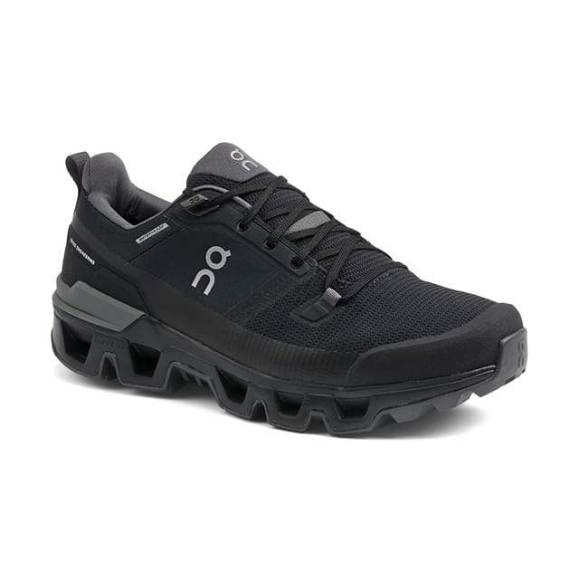 Discover the hiking shoes CLOUDWANDER WP of the brand On running. Designed for the adventurous, these shoes offer a perfect combination of functionality and comfort. Their Missiongrip rubber sole ensures strong grip on a variety of terrains, while the lining and top in 90% recycled polyester provide exceptional protection and durability. The textile and removable insole makes cleaning and maintenance easy. The CLOUDWANDER WP shoes are ideal for trekking, mountaineering and long-term walking activities. With their functional and robust design, they meet the needs of athletes seeking optimal performance while enjoying maximum comfort. The CLOUDWANDER WP shoes are available in black, a dark and elegant color that perfectly suits the world of hiking and sports. -