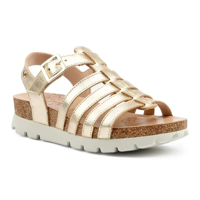 Discover the Sasha Sandals of the brand Panama Jack, a must-have for evenings, office and ceremonies. These elegant and chic sandals are designed for real adventurers who want to add a little refinement to their look. Made in Spain with premium materials, the Sasha Sandals combine metallic leather with leather to offer exceptional comfort and durability. The white synthetic sole guarantees an impeccable hold, while the leather insole ensures optimal support. The Sasha Sandals feature a sophisticated style with metallic leather sandals that perfectly fit your foot. The gold color will add a classy touch to your look, while the multiple horizontal stripes on the foot create an elegant effect. The functional aspect of these sandals is paramount: they offer perfect support and absolute comfort for long hours of wearing. The adjustable ankle buckle closure ensures a precise fit for optimal comfort. The Sasha Sandals from Panama Jack are a must-have for women who want to add a little style and sophistication to their look. They are perfect for parties, office and ceremonies, and are designed to last. -