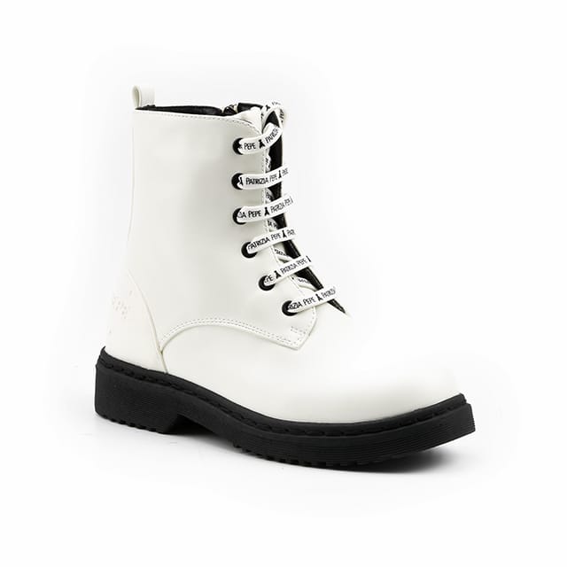 The PPJ700 ankle boots from the Patrizia Pepe brand are designed for general and everyday use. These warm, synthetic ankle boots offer optimal comfort thanks to their warm textile lining. Their leather insole guarantees durability and superior quality. Gum soles provide solid protection and stability. The synthetic boot details are elegantly designed for a chic, versatile look. The white color of these ankle boots is ideal for everyday use. The black laces, with the brand name "Pepe Jeans London", add a touch of style. The PPJ700 ankle boots are designed to maintain their shape and offer comfort throughout the day. -