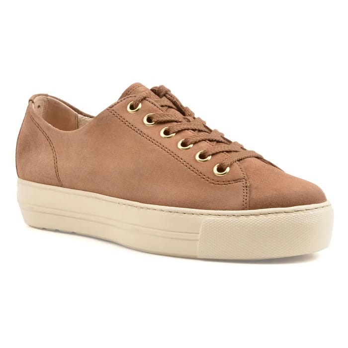 The Paul Green 4790 sneakers combine elegance and comfort on a daily basis. Made in a soft brown suede, they are part of the fashion trend with a sleek and elegant aesthetic. The suede upper is enhanced with neat details, including brown leather straps and gold-tone artwork that highlight their timeless design. The textile interior and leather insole ensure optimal comfort for everyday use. The thick gum sole, ivory in color, brings a modern touch while ensuring discreet stability. With a heel height of 35 mm, these sneakers adapt to a day of walking as well as leisure outings. Made entirely in Europe, they embody the know-how of Paul Green, brands known for their quality, comfort and versatility. -
