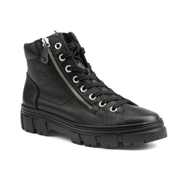 The Anais sneakers of the Paul Green brand are elegant and practical shoes, designed to accompany women on a daily basis. Made 100% in Europe, these trendy urban sneakers feature a leather upper and upper, providing exceptional comfort and quality. The textile lining and leather insole ensure optimal softness and flexibility. The synthetic outsole offers superior strength and durability. Shoe details include a leather uphill sneaker, a 40mm heel and reinforced stitching details for added durability. The Anais shoes are available in black, a chic and elegant color that suits all occasions. The Paul Green sneakers are renowned for their very comfortable fit and are ideal for fashion, everyday life and half-season. -