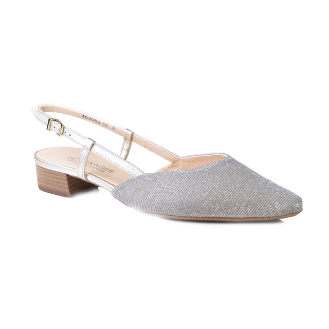 The Calissa shoes from the Peter Kaiser brand are elegant and elegant slingbacks. Designed for parties, events and even the office, these shoes are perfect for special occasions. The top and upper are made of textile, offering a feeling of comfort and lightness. The leather lining adds a touch of luxury, as does the leather insole. The rubber outsole guarantees durability and resistance. The heel measures 25 mm, offering an ideal height for women who want to feel elegant without being too high. Details of the shoe include a textile sling that adds a touch of style. The gold color is a chic and elegant option, ideal for formal occasions. The Calissa shoes are a perfect choice for women who want to feel stylish and elegant while being comfortable. -