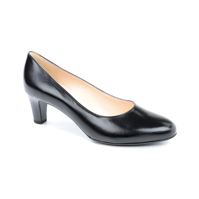 The Nika pumps from the Peter Kaiser brand are a perfect choice for parties, events or the office. These elegant pumps are made of high-quality leather, offering stylish styling and sophisticated fashion. Their polished leather upper and upper give a luxurious feel, while the leather lining ensures softness and comfort for the foot. The leather insole is also soft and comfortable. The rubber sole offers lightness and flexibility, while providing a solid foundation for heels. The heels measure 50 mm, offering a modest height that is perfectly suited to formal occasions. The minimalist details around the edges contribute to its elegant appearance. The black color is a classic and versatile option that adapts to many occasions. Nika pumps are a smart choice for women looking for a chic and elegant style for their evenings, events or for an office day. -