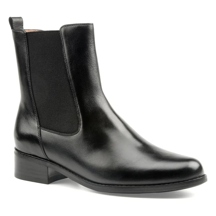 The Peter Kaiser Vancouver Chelsea Boots are a stylish and comfortable choice perfect for everyday occasions, parties or the office. These black leather ankle boots, with their smooth finish and elastic side panels, offer exceptional ease of donning and comfort. Their 35 mm heel is ideal for an active day or an elegant evening. The Vancouver ankle boots combine style and functionality, with a leather lining and leather insole for a comfortable feeling. The outsole made of synthetic material ensures durability and resistance to different surfaces. The details of these chelsea ankle boots include a zipper for easy adjustment. Peter Kaiser's Vancouvers are a chic and timeless choice for everyday occasions. -