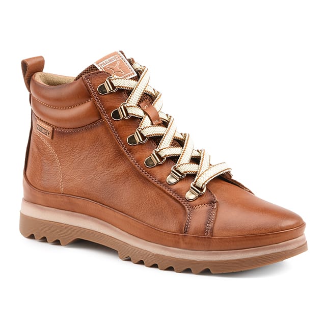 The VIGO shoes from Pikolinos are cognac leather uphill sneakers that combine style and comfort. Their leather upper is sturdy and offers great quality, while the lining is made of leather and textile for an optimal feeling of comfort. The insoles are made of textile and removable, thus facilitating the change of soles. The outsoles are made of rubber, offering good hold and great versatility. The heels measure 20 mm, making them perfect for everyday use. Shoe details include a lace-up leather ankle boot with zipper, making it easy to put on and off the shoe. The VIGO shoes are ideal for everyday or half-season use, and their urban and trendy style make them perfect for fashion lovers looking for a versatile and comfortable shoe. -