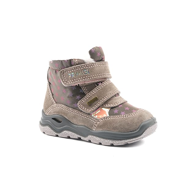 The Primigi 8366211 warm ankle boots are designed for general and everyday use. They offer exceptional support and comfort thanks to their ankle top design and their three adjustable hook and tongue straps. The top and upper are made of textile suede, while the lining is made of warm textile and Gore-Tex for optimal insulation. The insole is also made of warm and removable textile. The outsole is made of rubber, featuring a stripe pattern for better strength and durability. The details of the velvet leather and textile snow boot add a touch of style to these ankle boots. The taupe color is discreet and versatile, suitable for general use. The Primigi 8366211 ankle boots are designed to be comfortable and durable, with visible seams that add to their sturdiness. -