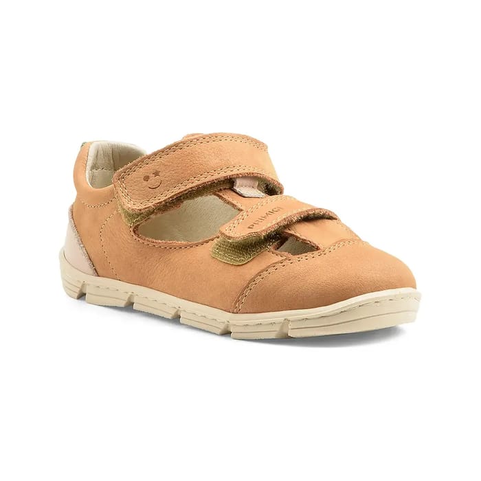 The flat sandals Codex of the brand Primigi are part of an elegant and casual aesthetic, ideal for summer outings. Made in a light beige nubuck, they combine softness and robustness thanks to their soft leather upper. The lined leather interior ensures optimal comfort throughout the day, while the lightweight rubber sole offers good stability and excellent breathability. Two adjustable Velcro straps, one of which is embellished with discreet floral patterns, make it easy to fit and thread thanks to the rear tab. A neat finishing detail and the Primigi logo on the strap reinforce the fashion character of these sandals. Perfect for the beach, holidays or everyday life, they stand out as an ally of choice for a light and comfortable style. -