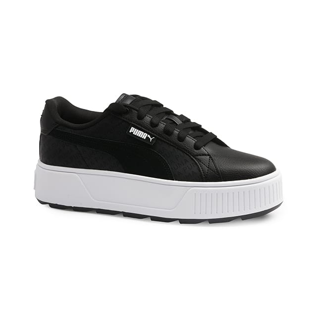 The Karmen Logobsession of Puma are sneakers that combine style and comfort for everyday use. These shoes, designed for fashion lovers, are perfect for a walk or leisure. Their leather and synthetic upper and upper offer versatility and flexibility, while the textile lining ensures softness and lightness. The textile insole and synthetic outsole provide protection and stability. The Karmen Logobsession are available in black, a classic color that fits all styles. -