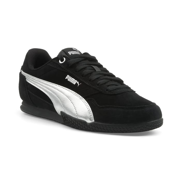 The Puma Bella Donna Sd Metallic JR embodies the perfect combination of elegance and everyday convenience. These timeless style sneakers stand out for their silky suede upper, offering both softness and resistance, ideal for everyday use, whether it is urban walks or moments of relaxation. Their textile lining ensures optimal comfort, while the removable and textile insole allows a personalized adaptation to the morphology of the foot. The sturdy and durable rubber sole ensures stability with every step. The elegant details, such as the velvet leather sneaker and the subtle metallic touch on the side, underline the bold design of this pair, while remaining sober and versatile. Available in black, this model fits as well in a casual outfit as in a more dressed look, reflecting the fashion spirit and comfort of the brand Puma. Perfect for any moment, these sneakers combine understated performance with assertive style. -