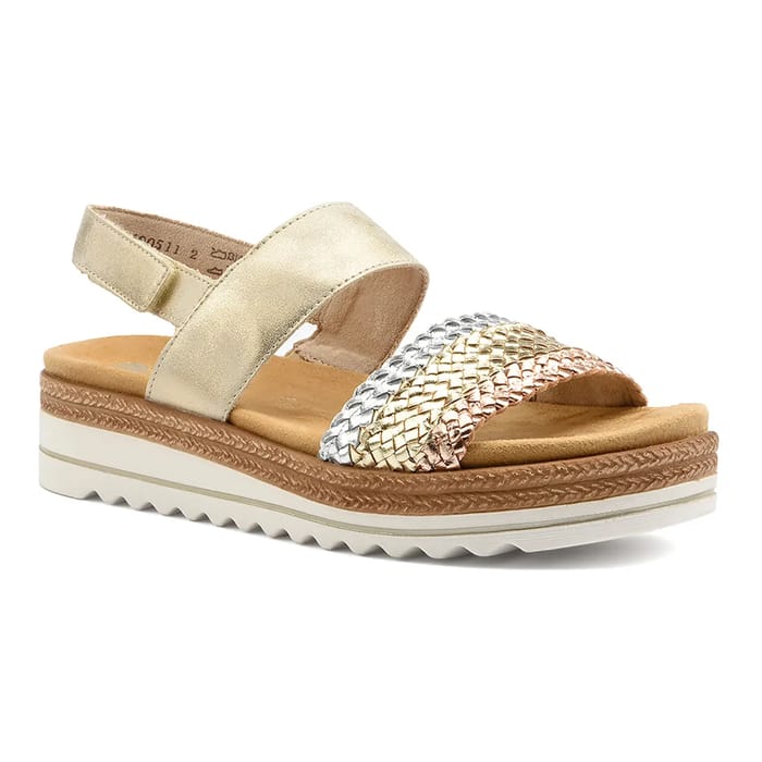 The sandals D0Q56 of the brand Remonte are stylish and chic fashion accessories, designed to accompany your evenings, your outings at the office or your ceremonies. These 40 mm heeled sandals are made of leather and synthetic, offering exceptional refinement and support. The top and upper are made of leather and synthetic, while the lining is made of textile. The insole is also textile and removable, providing optimal comfort. The outsole is made of synthetic material, with a textured pattern that adds a touch of style. The D0Q56 sandals are available in multicolor, making them perfect for any occasion. -