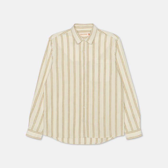 The M's Loose Shirt by the brand Revolution is an elegant and formal piece for your wardrobe. This long-sleeved shirt is crafted in a blend of 70% organic cotton and 30% linen, offering comfortable breathability and fit. The shirt is available in a pretty ecru color, perfectly suited for formal occasions such as ceremonies or events. The stitch style of the shirt is classic and sophisticated, while the long sleeves with buttons at the sleeve offer a touch of refinement. A small pocket is located on the left chest, convenient to store your accessories. The Revolution M's Loose Shirt is a great option for those looking for an elegant and chic look for their office or formal occasions. -