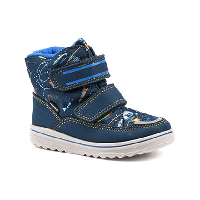 The Space boots of the brand Richter are designed for general and everyday use. These Velcro Boots are elegant and versatile, providing optimal comfort throughout the day. Their synthetic and textile top is warm and soft to the touch, while the textile lining provides additional insulation. The warm textile insole ensures optimal comfort for the feet. The rubber outsole offers durability and wear resistance. The Space ankle boots feature two adjustable Velcro bands for quick and easy fastening and unfastening. The details of the synthetic and textile snow boot add a touch of style to these ankle boots. The navy blue color is elegant and attractive, while the cosmic patterns in blue and black add a touch of personality. The Space ankle boots are perfect for kids who love space and adventure. -