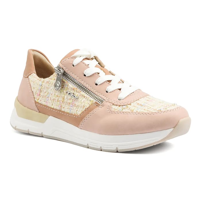 The Rieker 58902-31 shoes are feminine sneakers designed for everyday wear. Their pink textile top and white laces give them a trendy and trendy look. Details of the shoe include a textile panel with a multicolored tweed pattern, in shades of beige, yellow, orange, blue and red, which adds a touch of personality. A silver zip close to the heel makes it easy to fit and remove the shoe. The textile and removable insole ensures optimal comfort, while the rubber outsole ensures a strong hold. The shoes Rieker 58902-31 are ideal for leisure outings, walks or simply to accompany your everyday. -