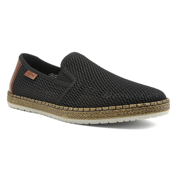 The Ambor loafers of the brand Rieker are luxury shoes that combine style and comfort. These classic loafers are designed for formal occasions, such as evenings or events. The top and upper are made of textile, offering a unique lightness and flexibility. The lining is also made of textile, adding an extra touch of comfort. The insoles are made of leather, guaranteeing a unique feeling of comfort. The outsoles are made of rubber, offering durability and resistance to wear. The details of the textile espadrille add a touch of style and sophistication. The Ambor loafers are available in black, a chic and elegant color that is perfect for formal occasions. The Rieker shoes are known for their refinement, comfort and style, making them an ideal choice for men and women who value quality and sophistication. -