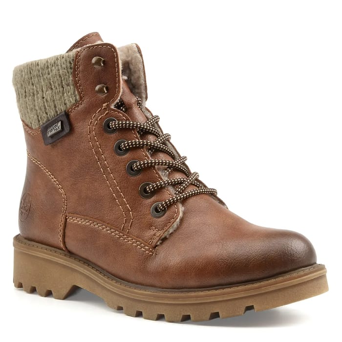 The hot boots Bogota of the brand Rieker combine elegance and comfort everyday. Made from a blend of synthetic and textile, they offer a warm, stylish silhouette, enhanced by a sheepskin lining for lasting warmth. The textile insole ensures optimal comfort throughout the day, while the rubber outsole brings durability and lightness. The 38 mm heel offers discreet stability, ideal for general use. Featuring a zipper on the side, these cognac ankle boots are part of a chic, versatile and comfortable range, perfectly suited for everyday use. The sleek design, with its marked stitching and mesh collar, enhances their rugged appearance without sacrificing style. Rieker puts all its know-how in this lightweight and flexible shoe, designed to offer a feeling of well-being unique in everyday life. -