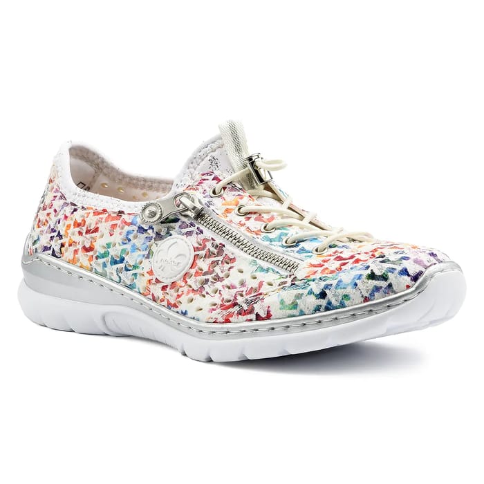 The Rieker L3252 shoes are multicolored sneakers that combine style and comfort. The top and upper are made of textile, offering a feeling of lightness and flexibility. The lining is also made of textile, adding an extra layer of comfort. The insoles are made of textile and removable, thus facilitating cleaning and maintenance. The outsoles are made of synthetic, offering durability and resistance to wear. The heel measures 25 mm, offering a slight rise for optimal comfort. Details of the shoe include a textile sneaker, adding a touch of style and sophistication. The Rieker L3252 shoes are ideal for everyday use, whether it is walking, leisure or outings with friends. They offer a functional look that combines fashion, comfort and versatility. The Rieker L3252 shoes are designed to offer a unique feeling of comfort in everyday life, while being both practical and stylish. -