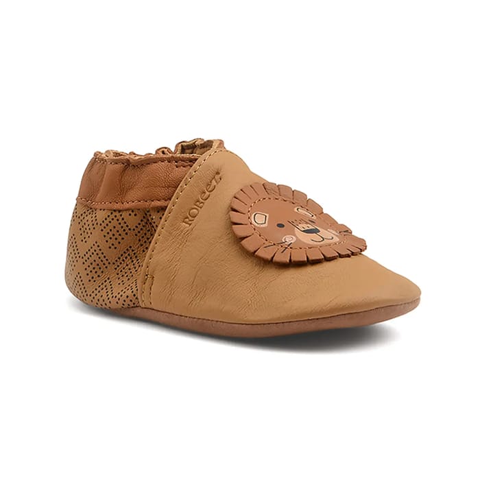 Discover the Slippers Grooar from Robeez, designed for exceptional comfort and softness. These vegetable tan leather slippers, available in cognac, are ideal for small feet learning to walk. Their insole and outer in vegetable tanned velvet leather guarantee optimal softness and flexibility. The natural tanned leather slipper adds a touch of extra comfort. The Slippers Grooar are also equipped with an elastic opening for easy wearing and removal. Their functional and comfortable product range makes them perfect for relaxing moments at home or in winter. -