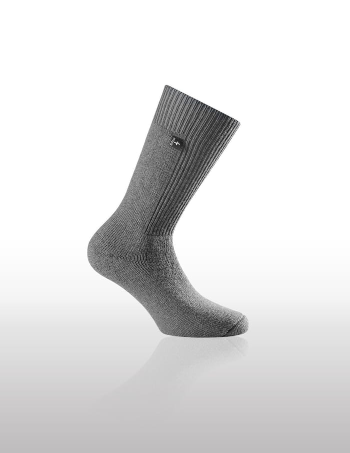 The trekking socks M's Army Working of the brand Rohner are designed for outdoor activities. These functional and sporty socks are ideal for hiking and trekking. Their top and upper are made of cotton and polyester, offering breathability and optimal comfort. The sock has an elastic band at the top end for an accurate fit. A stylized white logo on a black background is visible near the top end, adding a sporty touch. The M's Army Working socks are designed to withstand outdoor conditions, with guaranteed durability for extended use. The gray color is a convenient and discreet option for outdoor activities. -