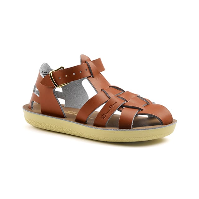 The Flat sandals "The Shark" of the brand Salt water are designed for daily, summer or beach use. These casual sandals are stylish and comfortable. Their cognac leather upper and upper offer a touch of sophistication, while the leather lining ensures optimal comfort. The leather insole guarantees exceptional lightness and breathability. The beige rubber sole is slightly textured and bears the inscription "Salt Life" for a personal touch. The multiple straps and adjustable clasp provide a perfect fit for the feet. The Flat sandals "The Shark" are ideal for holidays, beaches or summer days. -