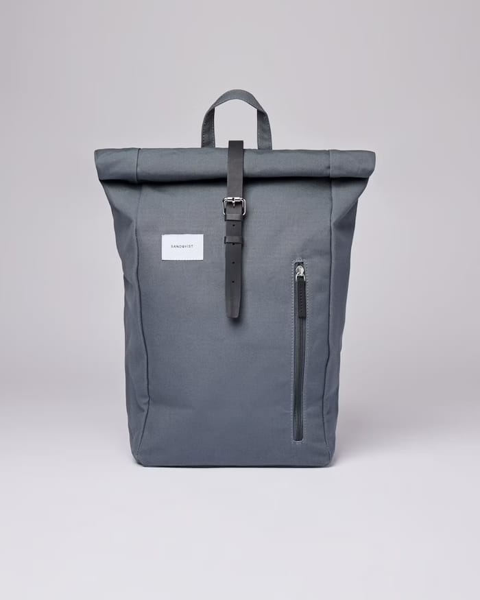 The DANTE backpack from the Sandqvist brand is a versatile and functional accessory designed to meet the needs of everyday life. Made from organic cotton and recycled polyester, this bag is durable and environmentally friendly. Its minimalist design and functional appearance make it an ideal partner for hiking, studies or work. The DANTE has a main compartment with roller closure, secured by a black canvas belt and a metal clasp. A vertical pocket closed by a zipper is located on the front of the bag, providing additional space to store your belongings. A small white label is affixed near the upper left corner, displaying the mark "SANDVIKST". The bag also features a unique handle on the back, allowing it to be worn comfortably. The DANTE is available in grey, a neutral and elegant color that suits all styles. This bag is designed to offer a perfect balance between comfort, strength and storage. It is ideal for people looking for a travel accessory or a versatile and functional work bag. -