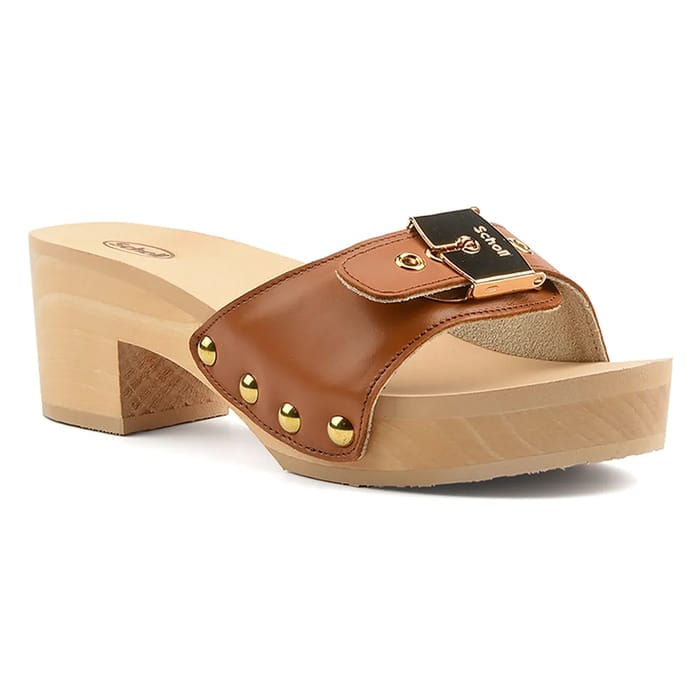 The mules Pescura Ibiza 2.0 of the brand Scholl are designed for daily use and summer outings. These casual and comfortable shoes are perfect for hot summer days. Their heel measures 55 mm and their insole and outer are made of synthetic. The top and upper are made of leather, while the lining is made of velvet leather. The color is a pretty cognac that will suit all summer outfits. The leather mule details, such as velvet leather and cognac, add a touch of sophistication to these shoes. They are ideal for a relaxing summer or for a day of shopping. -