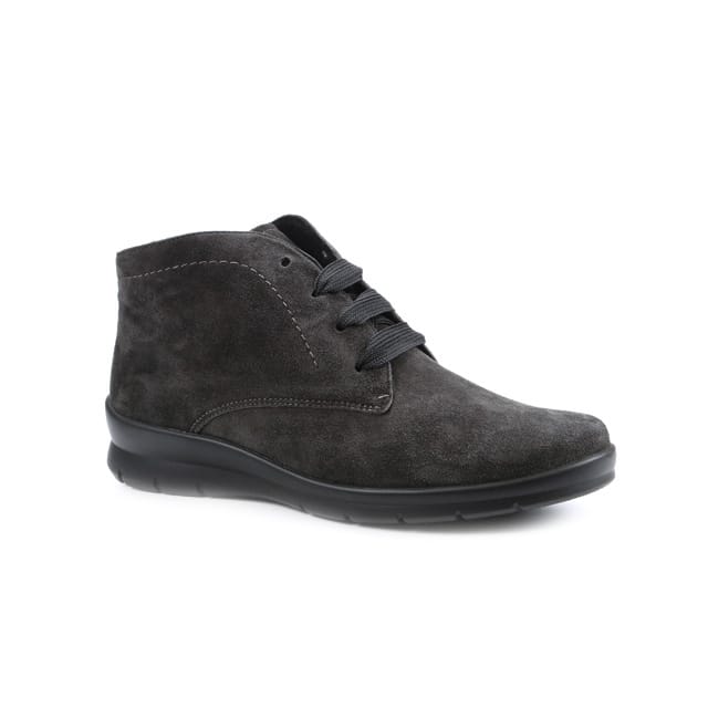 The Xenia ankle boots from the brand Semler are designed for general and everyday use. These warm ankle boots, in ankle boot style, feature a suede top and upper that offer a comfortable and versatile look. The textile lining provides thermal insulation, while the removable textile insole facilitates maintenance. The rubber sole ensures durability and optimal support. The ankle boots are equipped with velvet leather laces, which adds an element of style. The gray color, almost black, is ideal for a chic and elegant look. Xenia ankle boots are designed to offer comfort and durability throughout the year. -