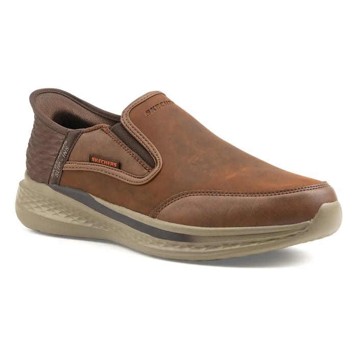 Discover the SKECHERS SLIP-INS RELAXED FIT, classic loafers designed for exceptional everyday comfort. Made of leather and textile, these shoes offer refinement and elegant style for formal occasions. Their leather and textile upper and upper ensure optimal softness and flexibility, while the textile lining ensures thermal insulation and protection against external elements. Textile insoles offer extra support and cushioning, while making walking easier. The rubber outsole ensures exceptional strength and durability. The shoe details, such as the leather and textile loafer and leather visor, add a touch of sophistication and refinement. The SKECHERS SLIP-INS RELAXED FIT are available in brown, a neutral and elegant color that is perfect for formal occasions. These shoes are ideal for office occasions, parties and events, where stylish style and exceptional comfort are essential. -