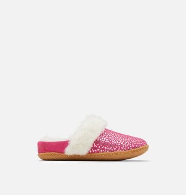 SLIP-ON SPARKLE Keep their feet toasty and twinkling with these plush slippers. The slip-on style features a suede upper, faux fur cuff, and a sprinkling of iridescent dots. Plus, the sturdy rubber sole can be worn indoors and out. -