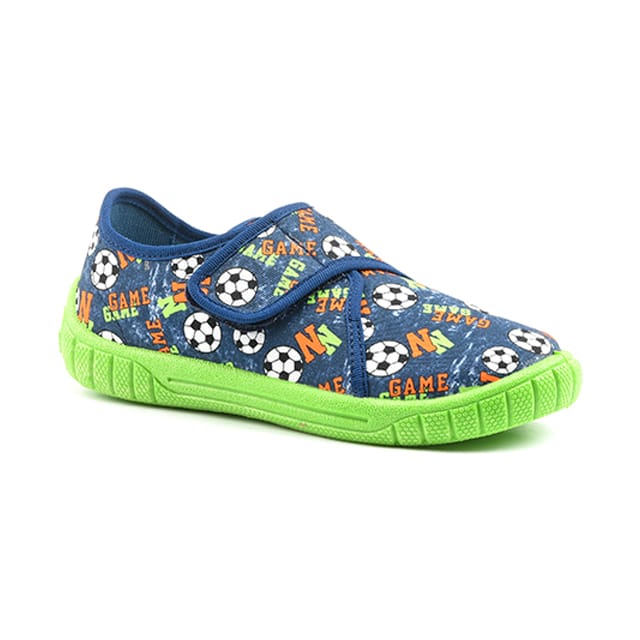 The Slippers Superfit Champions! are designed for comfort and functionality. These textile slippers are ideal for small footballers who like to play outdoors, even in winter. Their textile top is durable and easy to clean, while the textile lining ensures maximum softness for the feet. The two Velcro strips allow for an easy and fast fit. The rubber sole offers solid protection and good thermal insulation. The Slippers Superfit Champions! are available in navy blue, a color reminiscent of the clear skies of a match day. They are perfect for small footballers who like to play outdoors, even in winter. -
