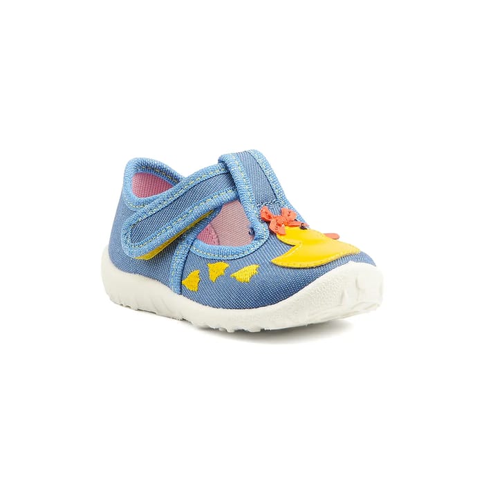 Discover the Slippers Duck from Superfit, ideal for small feet who love to play and run in winter. These comfortable slippers are designed to bring warmth and softness to children's feet. Their blue textile top, imitating denim canvas, is decorated with yellow triangles and an orange flower, adding a touch of cheerfulness to the set. The closure system with loops and tabs allows an easy and convenient closure. The white rubber soles ensure good stability. The inside of the slipper is lined with a pink textile, complementing the playful appearance of these shoes. The Slippers Duck are perfect for relaxing moments at home or for winter outings. -