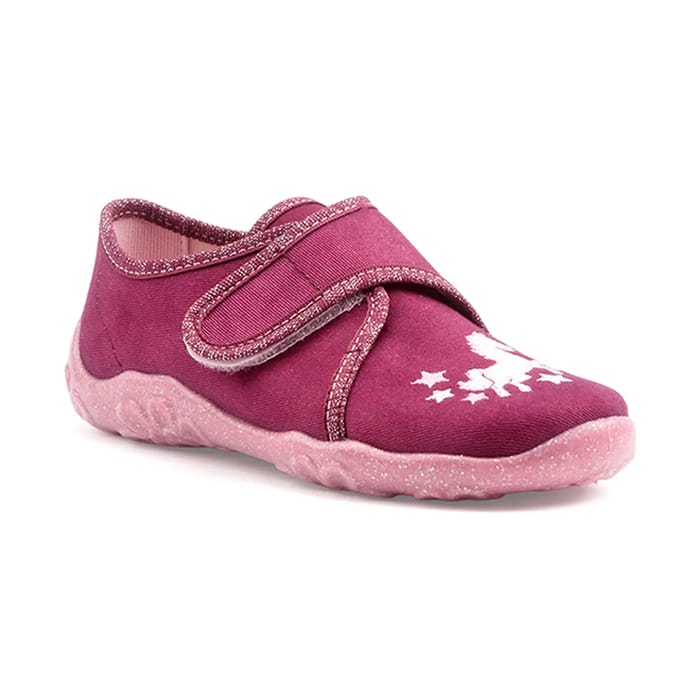 Discover the Unicorn & stars Superfit slippers, ideal for cold winter days. These comfortable slippers are designed to bring warmth and softness to your feet. Their textile upper and upper ensure optimal flexibility, while the textile lining ensures efficient thermal insulation. The textile insole allows for optimal ventilation, while keeping feet warm. The rubber outsole offers solid protection and wear resistance. The details of the slipper, such as the textile zipper, add a touch of simplicity and practicality. Kids will love the unicorn and white star designs on the sides of these slippers, while parents will appreciate their functional and comfortable appearance. Available in a pretty burgundy color, these slippers are perfect for moments of relaxation at home or for outings in winter. -