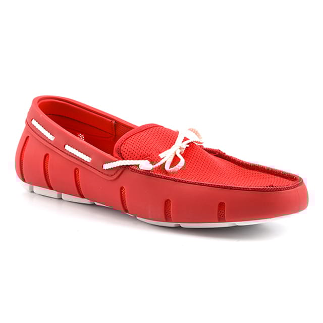 The Braided Lace Loafer shoe from the brand Swims is a model of sport loafers casual and chic. This shoe is designed for everyday use, outings and work, and is characterized by its lightness and comfort. The top is made of textile, while the upper and lining are made of synthetic. The insole is textile and removable, and the sole is rubber. The boat shoe in textile and synthetic has details that make it unique. The red color is accented by white stitching and a knotted white lace-up on the vamp. The cutouts on the sides ensure optimal ventilation. This shoe is ideal for those looking for a mix of comfort and style for their daily activities. -