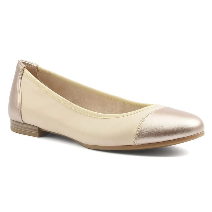 The Alena ballet shoes from the brand Tamaris are casual and chic shoes, perfect for everyday, work or casual outings. Designed to offer exceptional comfort and lightness, these leather and metallic leather flats feature a synthetic sole and leather insole. Their heel measures 15 mm, offering a slight elevation without compromising comfort. The stitching details visible along the edges attest to the quality of the manufacture. The Alena are available in beige, a neutral and elegant color that will suit any occasion. -