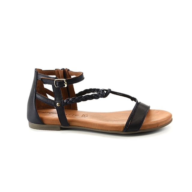 The flat sandals Kim of the brand Tamaris combine elegance and comfort in a design perfectly suited to casual and summer atmospheres. Made of soft leather, they offer a leather lining and insole for a feeling of well-being throughout the day. The 10 mm heel provides discreet stability, while the braided flange with adjustable clasp ensures a custom fit. Available in navy, these sandals fit as well a beach outing as a day in the city or on a holiday. Their lightweight, breathable and fashionable appearance make them ideal for everyday use, while highlighting a feminine and neat style. A smart choice for those looking for both comfort and elegance. -