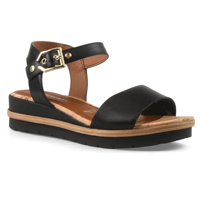 Discover the sandals Mirama of the brand Tamaris, ideal for summer days. Crafted from leather, these flat sandals offer exceptional comfort and breathability. Their leather insole ensures softness under the foot, while the synthetic outsole ensures durability and wear resistance. The two adjustable leather bands, decorated with a gold clasp, allow a perfect attachment to the foot. The 40 mm sole offers a discreet height while ensuring optimal stability. The Mirama are perfect for beach days, holidays or everyday life, and are suitable for any occasion. -