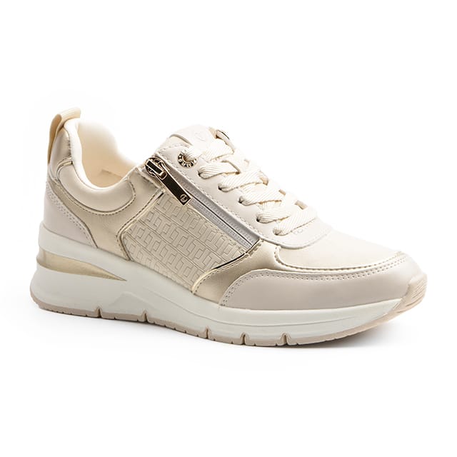 The Tamaris REA are wedge heel sneakers that combine elegance, comfort and fashion. Designed for women who want to stay fashionable while enjoying optimal comfort, these shoes are perfect for outings, leisure and everyday wear. Their 50 mm heel adds an elegant touch, while their synthetic sole offers a solid foundation. The textile lining guarantees soft underfoot, and the removable insole makes it easy to maintain shoes. The shoe details, such as the synthetic sneaker and white laces, add a touch of style. The Tamaris REA are available in ecru, a neutral color that suits every occasion. -