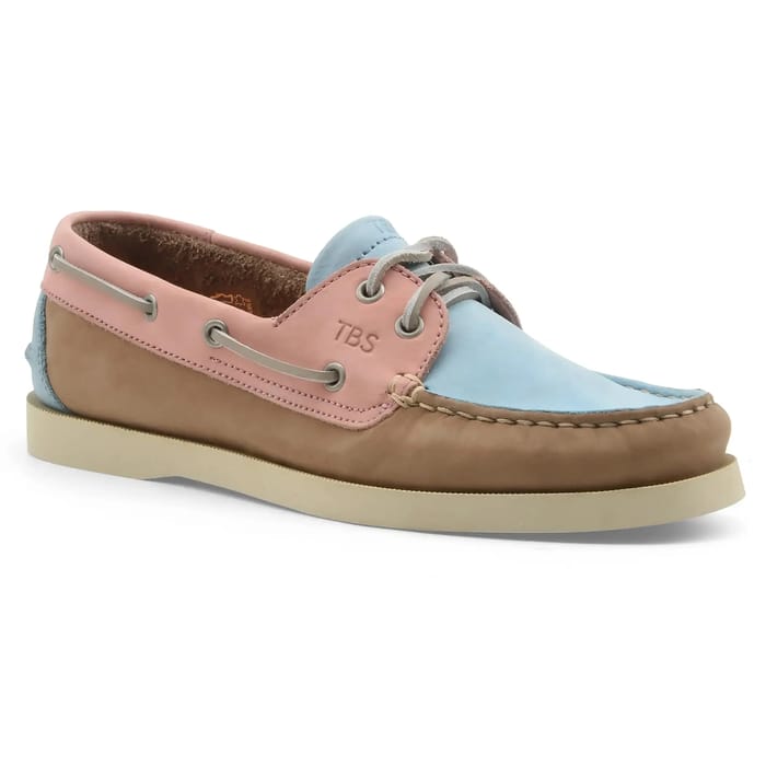 The PHENISE of the TBS brand are elegant and timeless boat shoes, perfect to combine style and comfort. Designed for casual wear, they fit into a summer outfit as well as for more chic outings. Their nubuck top, a soft and durable leather, offers a stylish texture and a pleasant touch, while the leather lining ensures a comfortable and durable interior. The lightweight and durable rubber sole guarantees a smooth and stable ride, ideal for long days. The model stands out for its bold multicolored design, combining shades of light blue and pink for a dynamic and modern look. Careful details, such as metal eyelets and exposed seams, enhance the shoe’s artisanal and premium look. The TBS logo, discreetly engraved on the side, recalls the brand's expertise in leather craftsmanship. Lightweight and designed for comfort, these boat shoes are the perfect ally for lovers of timeless style and elegant details. -