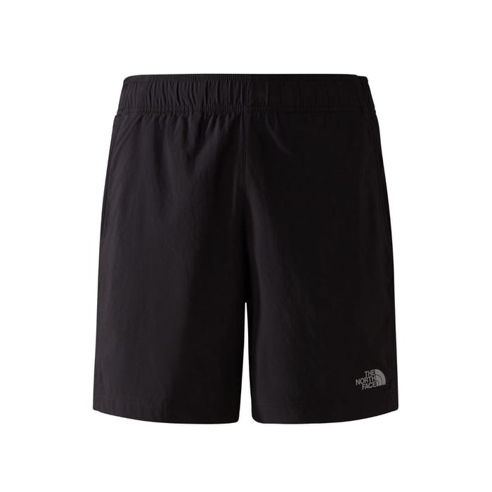 The M's 24/7 7IN SHORT shorts from The North Face are designed for sports and leisure activities. They are made of 100% polyester, offering optimal lightness and breathability for optimal comfort during training, running or leisure. Their functional design allows for total freedom of movement, while their black colors make them ideal for nighttime activities or dark days. The North Face logo appears on the right lower leg in white and gray, confirming their origin in the sports and functional range of the brand. -