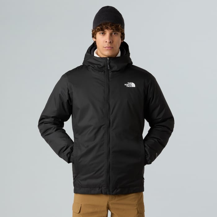 The M's QUEST INSULATED JACKET from The North Face combines style and functionality for outdoor activities. This sport jacket with 100% polyester lining offers optimal lightness and increased breathability, ideal for training or leisure. Its versatile design fits both outdoor outings and everyday use. Featuring a high collar and an integrated hood, it provides effective protection against the cold. The front zipper stretches to the collar, providing a regular fit and increased comfort. The white The North Face logo on the left chest adds a distinctive touch to this urban and functional look. -
