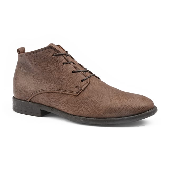 The CIVITA ankle boots from the brand Think are lace-up leather shoes designed for casual and semi-formal use. They feature a removable leather insole for added comfort and protection. Their rubber outsole provides solid protection against the weather. The CIVITA ankle boots are elegant with their brown leather upper and top, offering a rugged and durable appearance. Black laces pass through metal eyelets for an accurate fit. The details of the ankle boot are minimalistic, with fine stitching on the heel and top. A small pull button is located on the back of the boot to facilitate its setting. CIVITA ankle boots are ideal for autumn and winter, as well as for outdoor activities or work. -