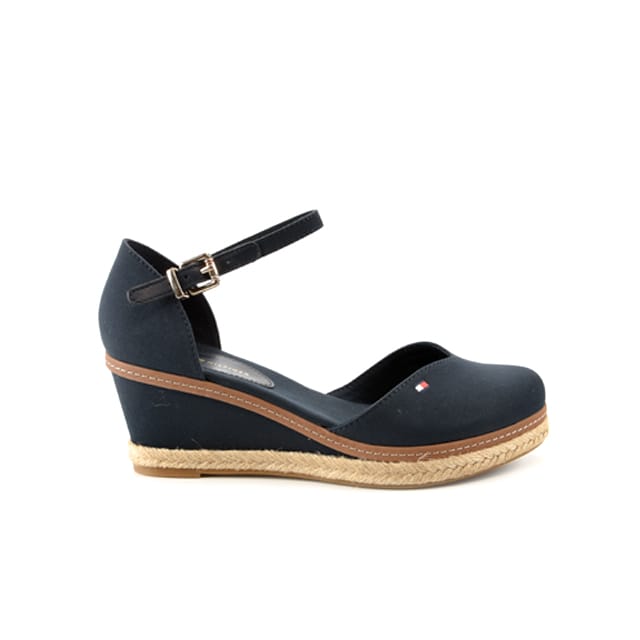 The Basic Closed Toe Mid Wedge sandal from Tommy Hilfiger is an icon of chic and elegant style. This closed-toe sandal, made of wedge-heel textile, is designed for formal or semi-formal occasions. The sandal features a 60 mm heel and textile top and upper, as well as a textile lining and insole. The outsole is made of rubber, offering a feeling of comfort and style. The sandal is available in navy blue, a stylish and elegant color that is perfect for an evening or event. The sandal is also ideal for the office, where it will add a touch of style and sophistication to your outfit. Tommy Hilfiger Basic Closed Toe Mid Wedge sandal is a smart choice for women who want to combine style and comfort in their wardrobe. -