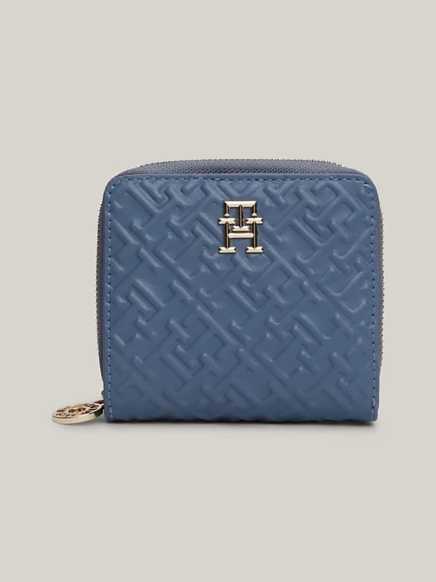 Purse Tommy Hilfiger TH DISTINCT MED ZA MONO, sky blue, polyurethane, polyester, 10 x 11 x 3.5 cm.