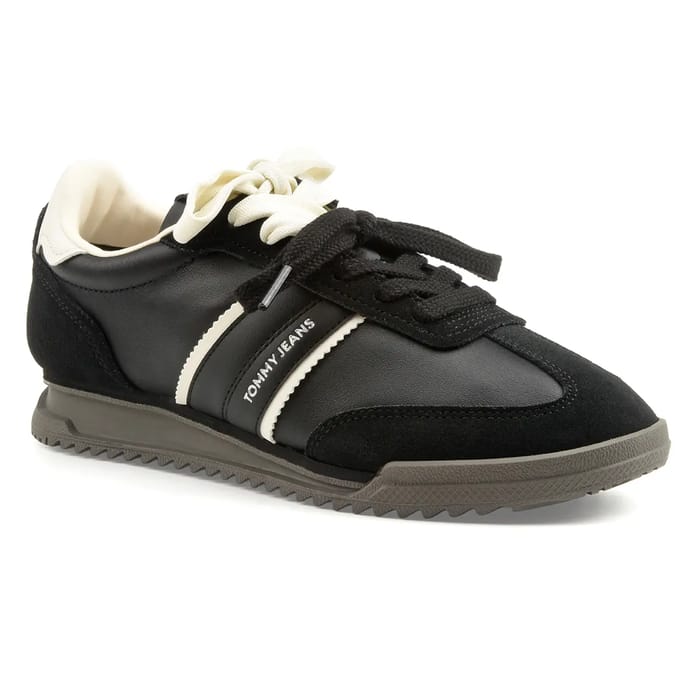 The Tommy Hilfiger TJW Low Profile Runner Lthrmix stand out as an iconic fashion shoe, combining timeless elegance with everyday comfort. Designed in a casual chic aesthetic, this suede and leather sneaker combines a sleek, understated design with stylish details, such as the reinforced stitching and velvet leather upper for a touch of texture. Its lightweight synthetic sole offers discreet stability, while its suede and leather upper ensures stylish durability. The black colorway highlights the white accents and the Tommy Jeans brand name inscribed on the side, adding a signature touch to this versatile model. Ideal for walking or leisure, it fits in the trendy range of the brand, combining undisputed style and discreet functionality. Its removable textile interior ensures personalized comfort, perfect for everyday use. -