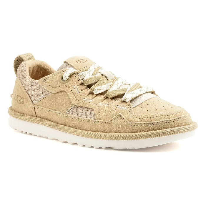 The Ugg Minimel is a sleek beige suede sneaker designed to combine style and everyday comfort. Featuring a removable textile insole, it offers soft support and a feeling of lightness from the first step. The suede top combined with mesh panels brings a touch of modern texture, while perforations near the end promote good ventilation. The durable synthetic sole ensures discreet stability, ideal for everyday outings or leisure moments. The sleek design, enhanced by the UGG logo on the tongue, side and heel, reinforces its iconic look. Available in a trendy range, this sneaker stands out as a must-have in the fashion wardrobe, as elegant to wear in town as it is for casual outings. -