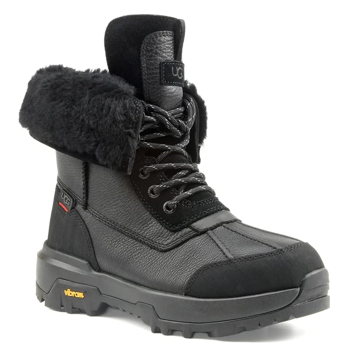 The W Adirondack Boot XXV ankle boots from the UGG brand offer unparalleled comfort while perfectly fitting in a chic and modern aesthetic. Designed for everyday use, they adapt to every situation, whether for urban trips or city walks. The waterproof leather and velvet leather upper provides effective weather protection, while the sheep lining provides remarkable warmth and optimal support. The sheepskin insole enhances comfort and fit, while the synthetic outsole ensures remarkable durability and stability. Featuring a fur collar and a UGG logo on the tongue, these ankle boots highlight the brand identity. The waterproof appearance of the top, combined with a robust construction, ensures effective protection against moisture. The black color fits in a versatile and elegant range, ideal for all styles. The combination of comfort, durability and design evokes an unforgettable wearing experience. -