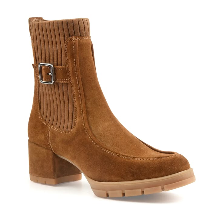 The JANA ankle boots from the brand Unisa are Chelsea style shoes that combine comfort and style. The top and upper are made of textile suede, offering exceptional flexibility and softness. The lining is made of leather and textile, ensuring optimal thermal insulation. The insoles are leather, while the outsoles are synthetic. The heel measures 60 mm and offers an ideal height for a desk or evening shoe. The JANA ankle boots are designed to be worn daily, with a timeless style that will suit any occasion. The velvet leather and textile used for the design of the JANA ankle boots offer a touch of sophistication and refinement. The design details, such as the buttonhole and visible stitching, add a touch of personality to the shoes. JANA ankle boots are available in a single color, cognac, which is ideal for lovers of warm and dark colors. -